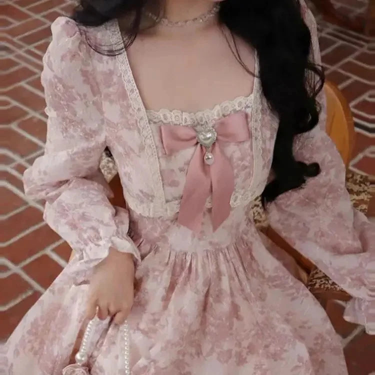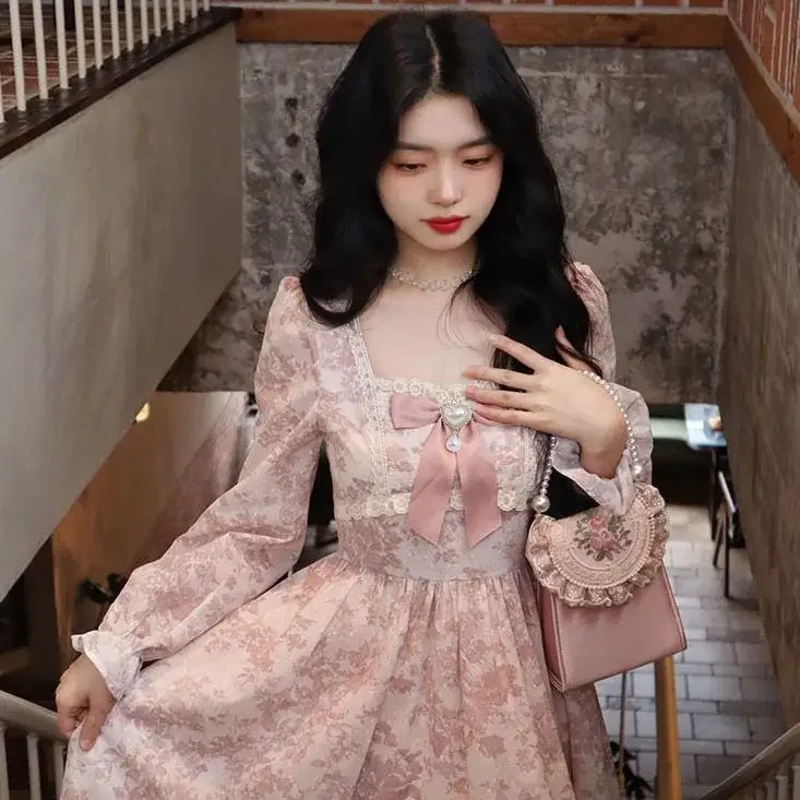 Gentle French Style Sweet Long Sleeve Dress Women's Four-way Stretch Inner Cloth Autumn New Arrival Fairy Tale System Dress