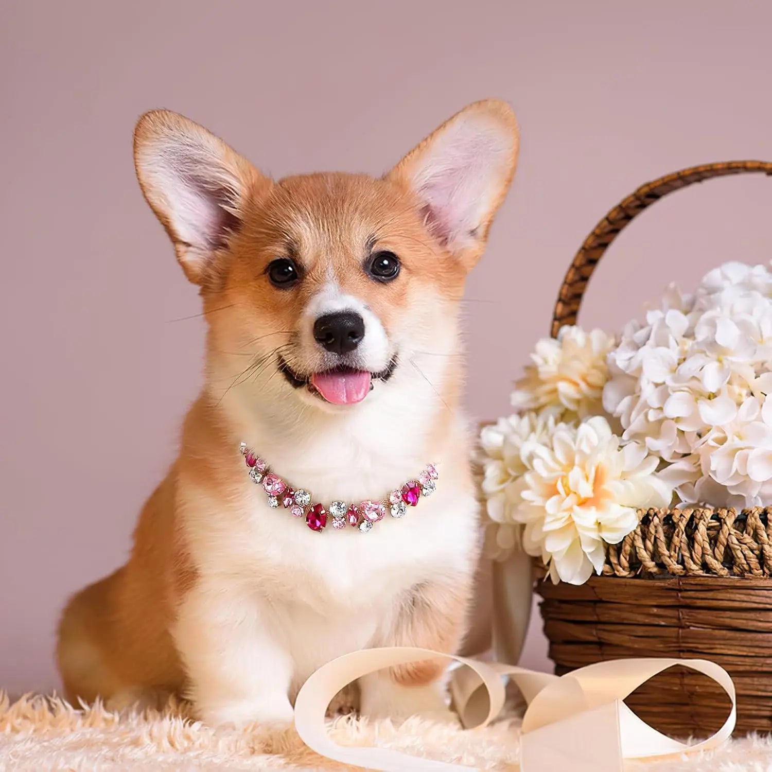 Luxury Gemstone Dog Cat Collar Gold Chain Necklace Fashion Pet Jewelry Accessories Puppy Diamonds Collar with Cute Pet Paw for Small Medium Dogs Cats Kitten